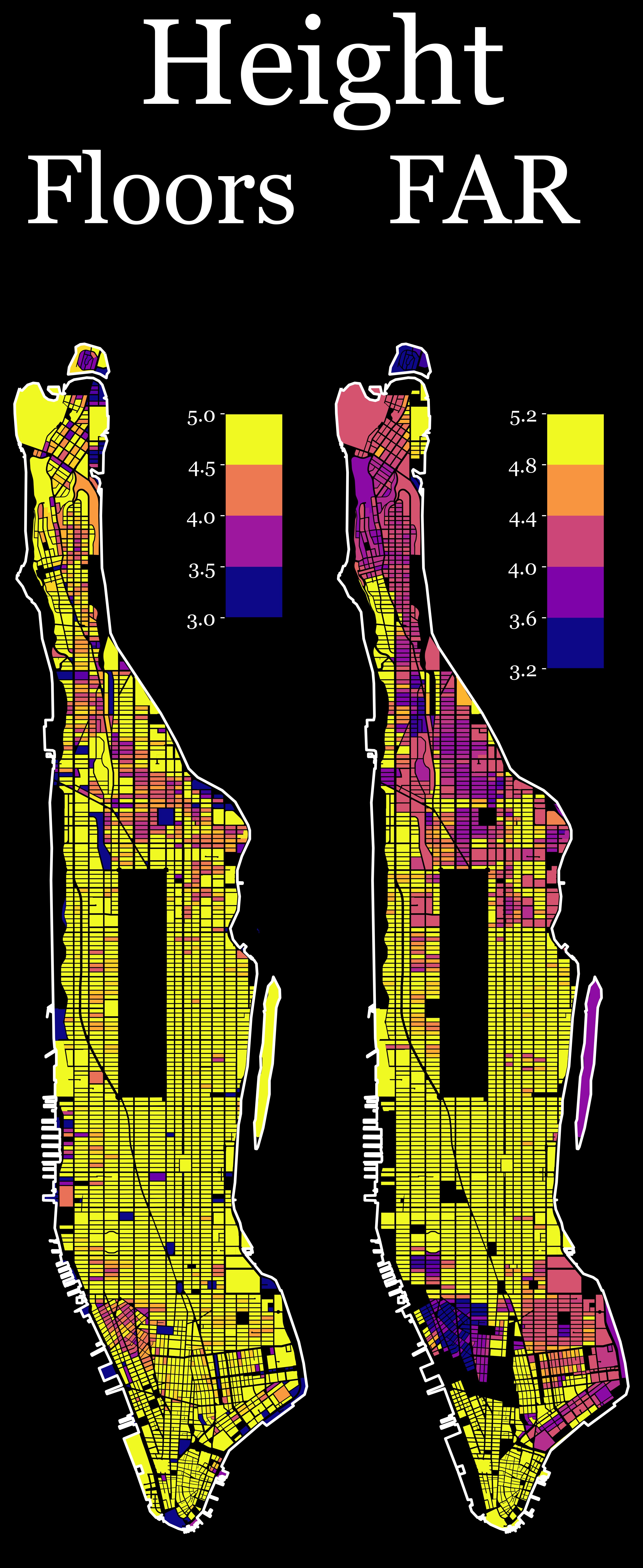 Side-by-side comparison of Floors and FAR for the same area.